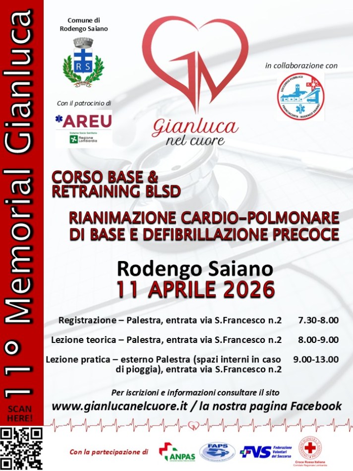 Sabato 11 aprile a Rodengo Saiano si terrà l’11° Memorial Gianluca nel cuore.